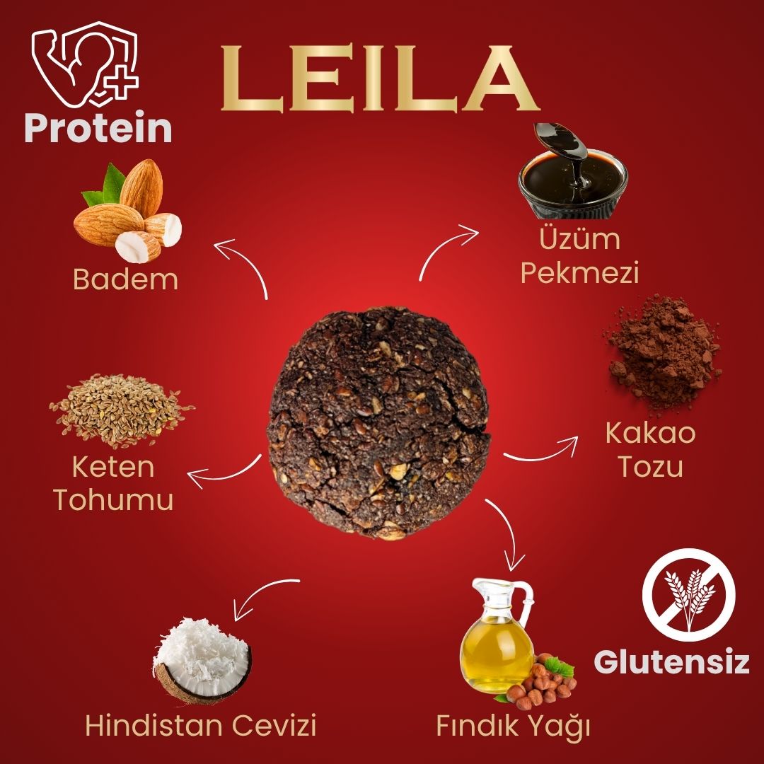 İÇİNDEKİLER: BADEM(%26), KETEN TOHUMU, GLUTENSİZ YULAF EZMESİ, ELMA KONSANTRESİ,FINDIKYAĞI, RENDELENMİŞ HİNDİSTAN CEVİZİ, ÜZÜM PEKMEZİ, KAKAO TOZU (%7), TUZ, TATLANDIRICI (İZOMALT(E953)%6), KABARTMA TOZU, BİBERİYE EKSTRATI, EMÜLGATÖR (AYÇİÇEK LESİTİNİ).ALERJEN UYARISI: BADEMVEFINDIKİÇERİR. ESER MİKTARDAKAJU, SOYA, SUSAM, SÜT TOZU, YER FISTIĞI,ANTEP FISTIĞIVECEVİZİÇEREBİLİR.KULLANIM TALİMATI:ATIŞTIRMALIK OLARAK TÜKETİLEBİLİR.TAVSİYE EDİLEN TÜKETİM TARİHİ (TETT) VE LOT NUMARASI AMBALAJ ÜZERİNDE BULUNMAKTADIR. ESER MİKTARDA CEVİZ VE MEYVE KABUKLARI VE/VEYA TOHUM VE SAP İÇEREBİLİR.MENŞEİ:YERLİ VE İTHAL HAMMADDELER KULLANILARAK TÜRKİYE'DE ÜRETİLMEKTEDİR.MUHAFAZA KOŞULLARI:KURU VE SERİN BİR YERDE SAKLAYINIZ. AÇILDIKTAN SONRA 3 GÜN IÇINDE TÜKETILMESI VE AMBALAJININ KAPALI OLARAK SERIN YERDE SAKLANMASI TAVSIYE EDILIR. DOMUZ YAĞI VE KATKILARI IÇERMEZ.