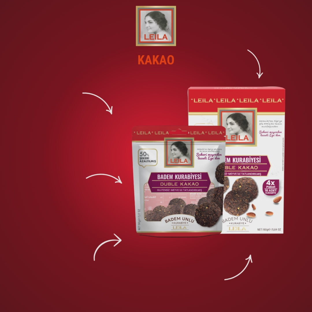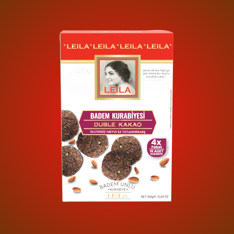 Duble Kakaolu Badem Unu Kurabiyesi, şimdi 160 gramlık özel kutusunda, her biri 40 gram olan 4 ayrı paket halinde!