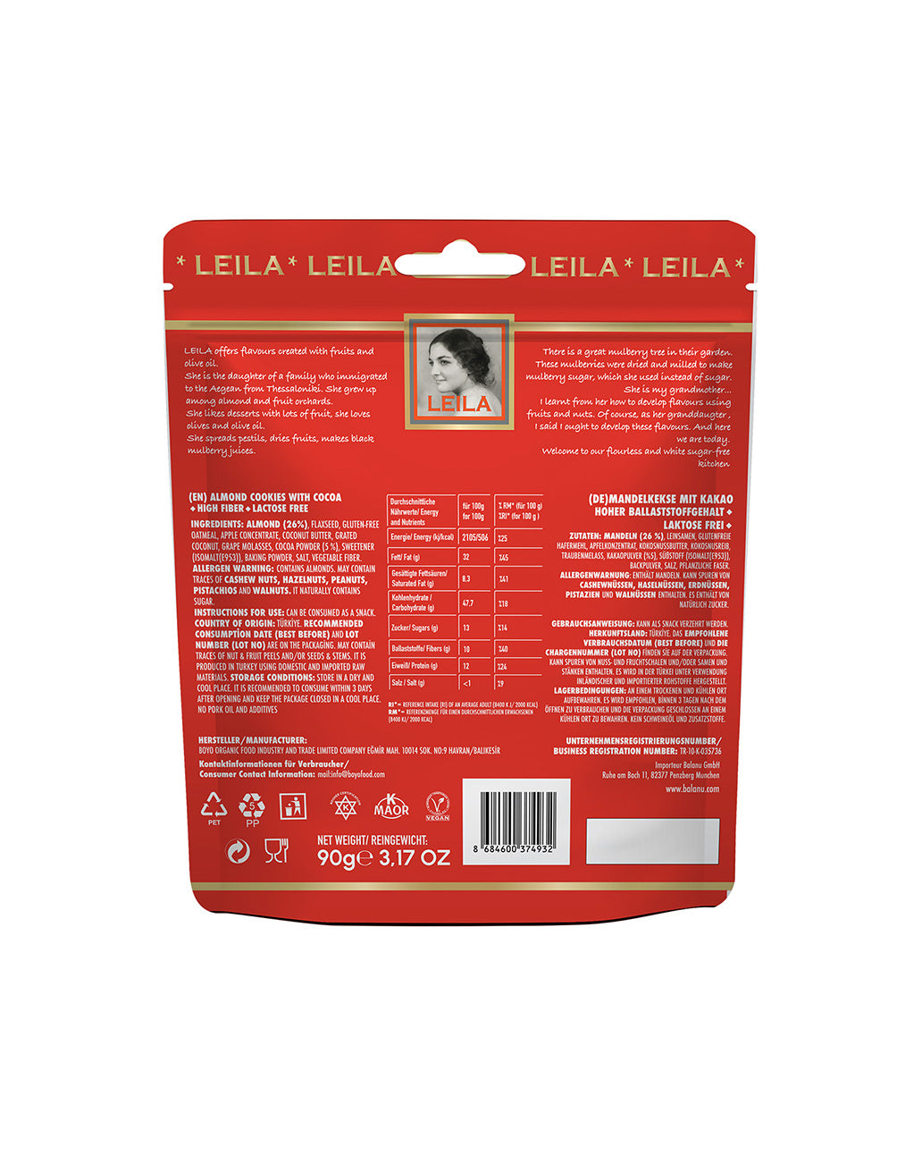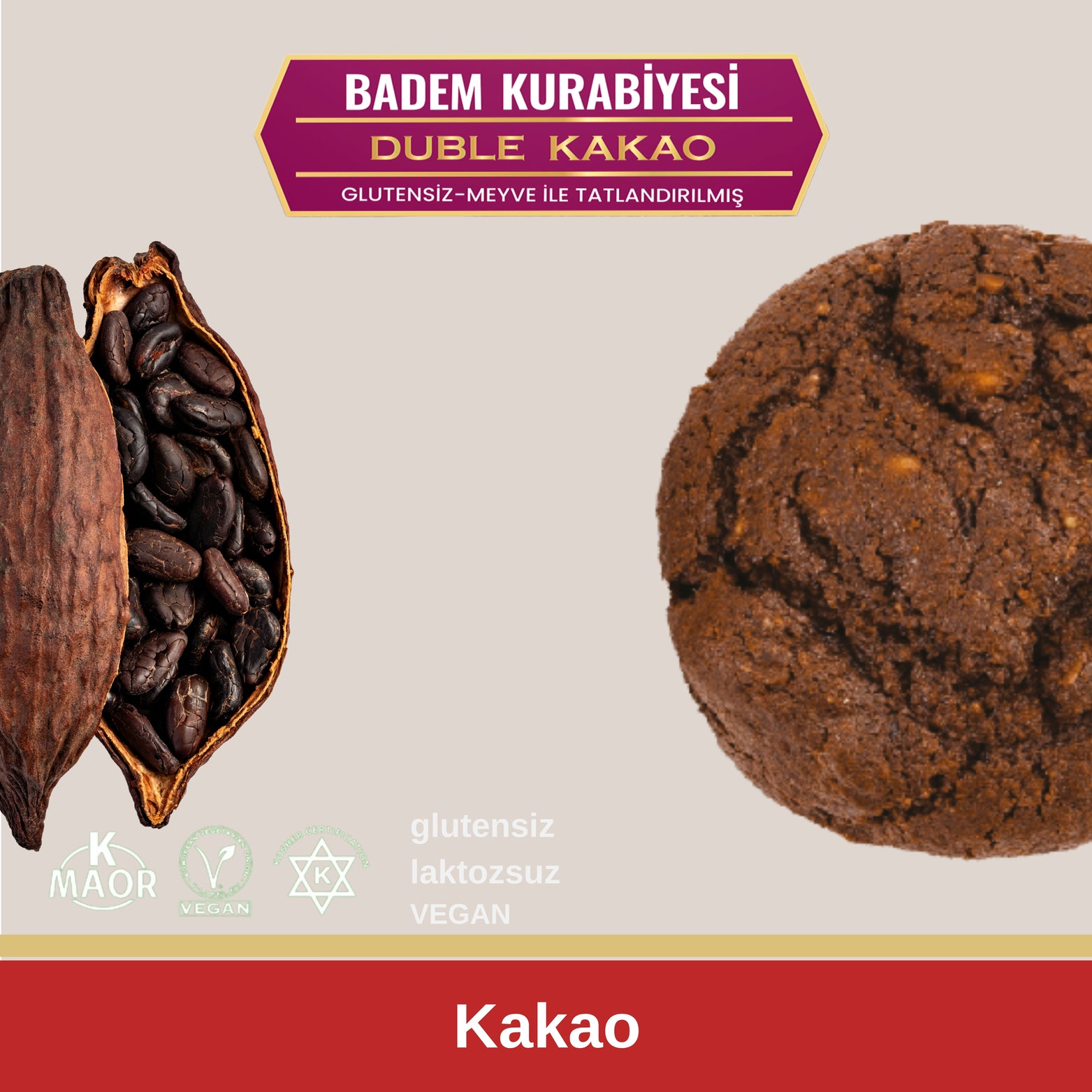 Duble Kakaolu Badem Unu Kurabiyesi, zengin kakao tadı ve badem ununun besleyici dokusuyla hazırlanmış sağlıklı bir atıştırmalık seçeneğidir. 90 gramlık doypack ambalajı sayesinde birden fazla porsiyon içerir; şekersiz, glutensiz ve laktozsuz yapısıyla gün içinde güvenle tüketilebilir.